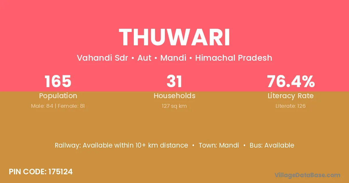 Thuwari village has a total population of 165 people, of which 84 are males and 81 are females.