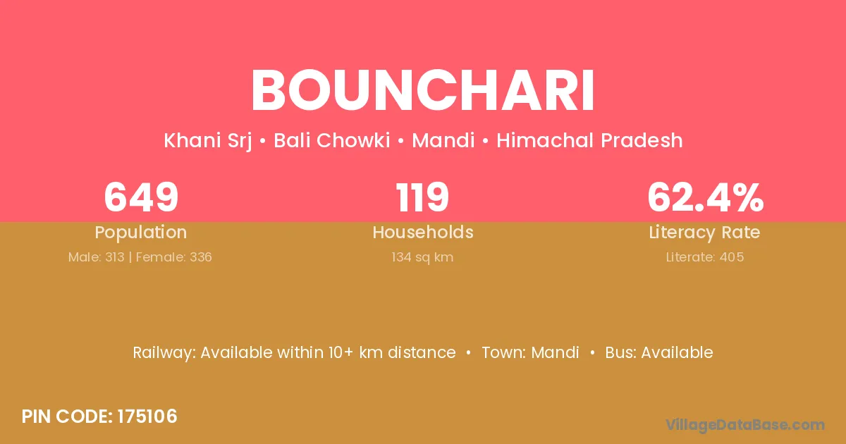 Bounchari village is located in the Bali Chowki Tehsil of the Mandi district in Himachal Pradesh .