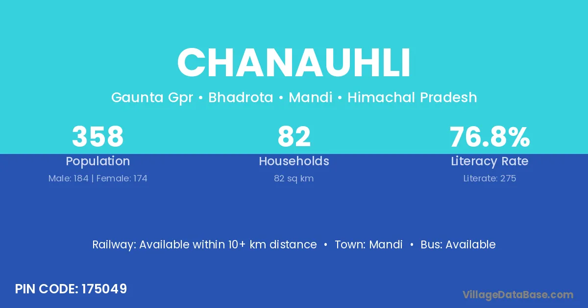 Chanauhli village has a total population of 358 people, of which 184 are males and 174 are females.