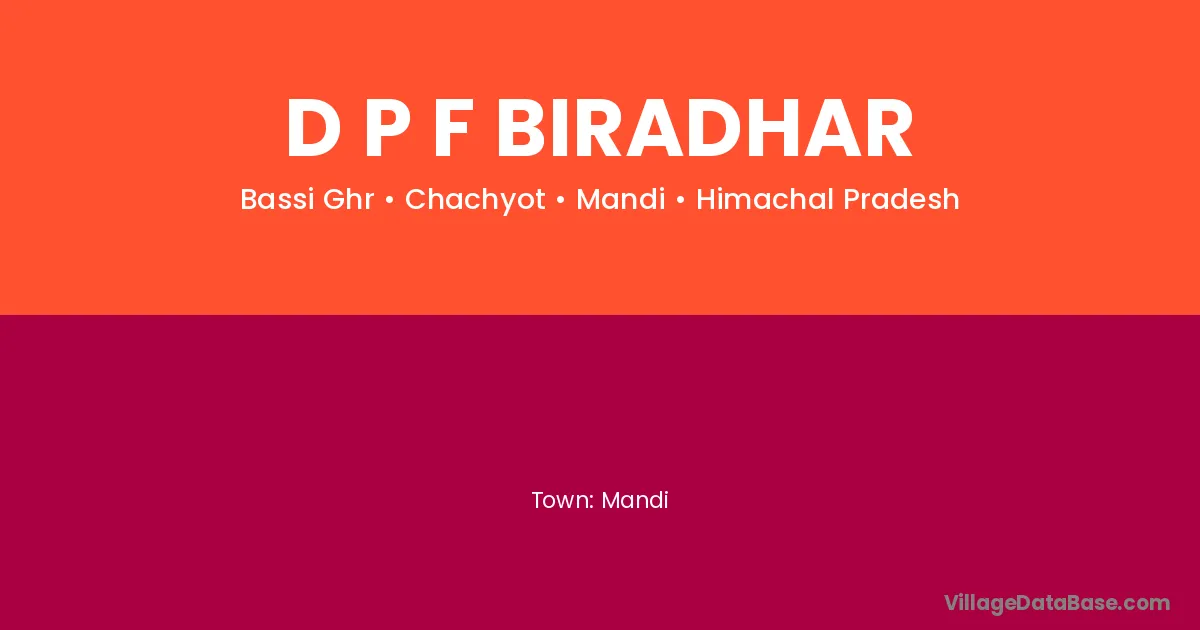 D P F Biradhar village is located in the Chachyot Tehsil of the Mandi district in Himachal Pradesh .