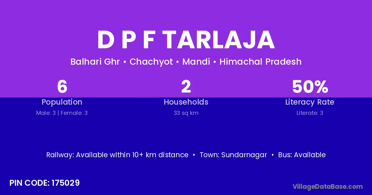 D P F Tarlaja village has a total population of 6 people, of which 3 are males and 3 are females.
