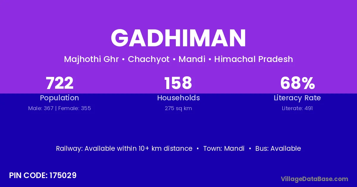 Mandi is the nearest town to Gadhiman village for major economic activities