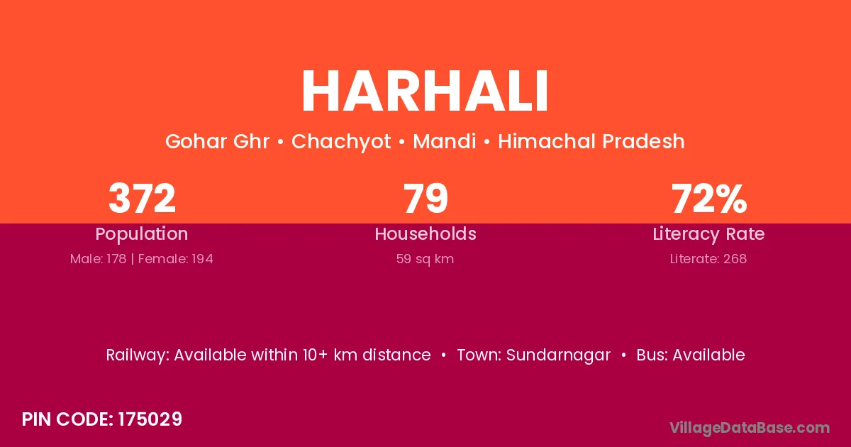 Harhali village has a total population of 372 people, of which 178 are males and 194 are females.