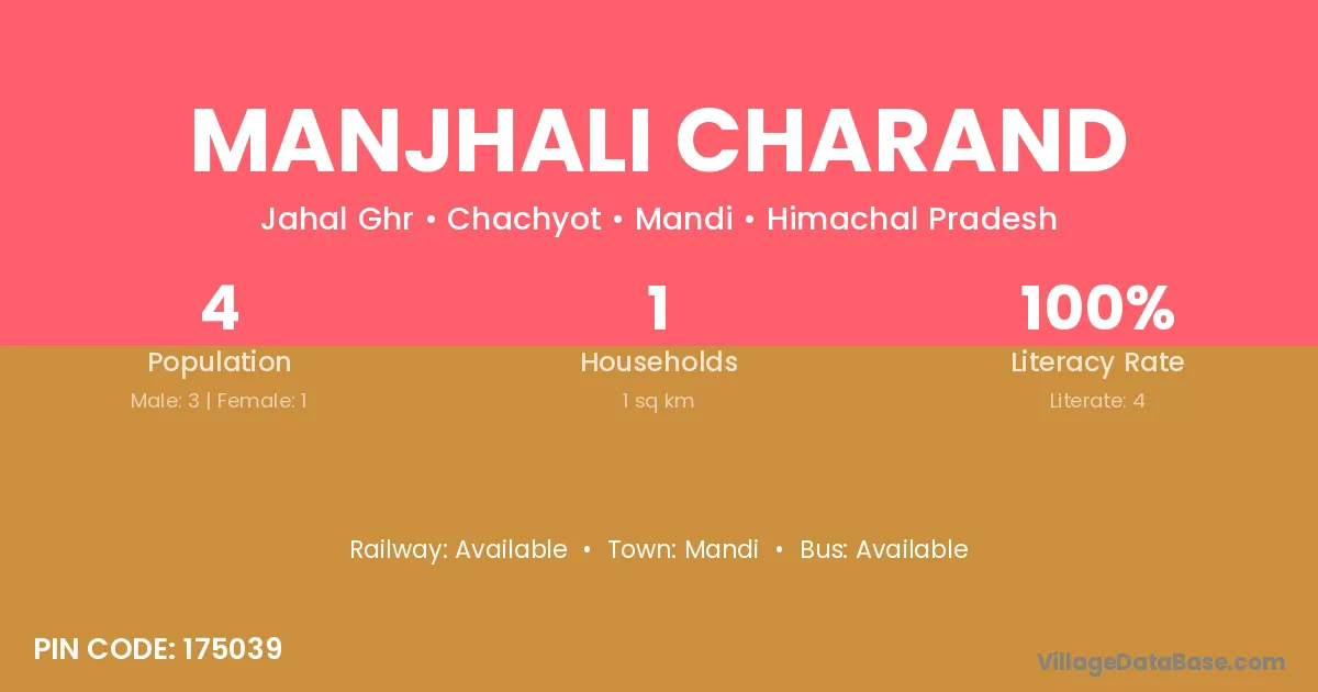 Manjhali Charand village has a total population of 4 people, of which 3 are males and 1 are females.