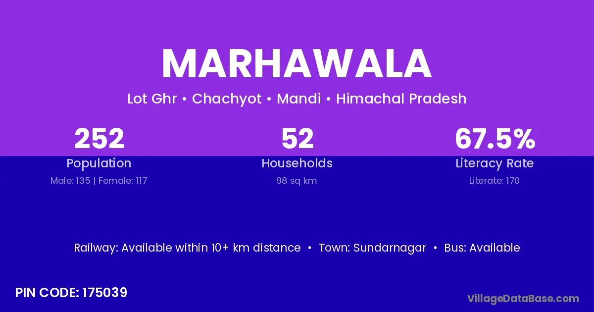 Marhawala village has a total population of 252 people, of which 135 are males and 117 are females.