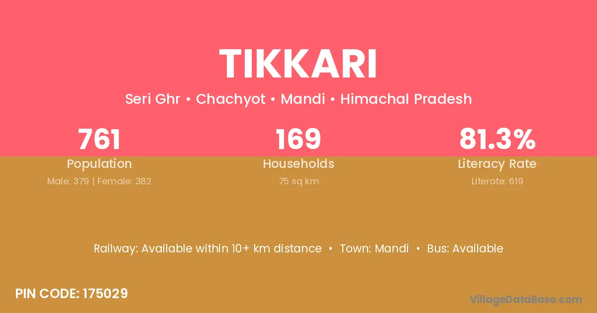 Tikkari village is located in the Chachyot Tehsil of the Mandi district in Himachal Pradesh .