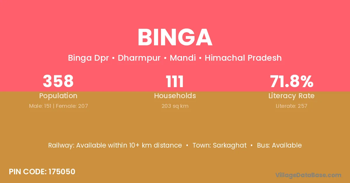 Binga village has a total population of 358 people, of which 151 are males and 207 are females.