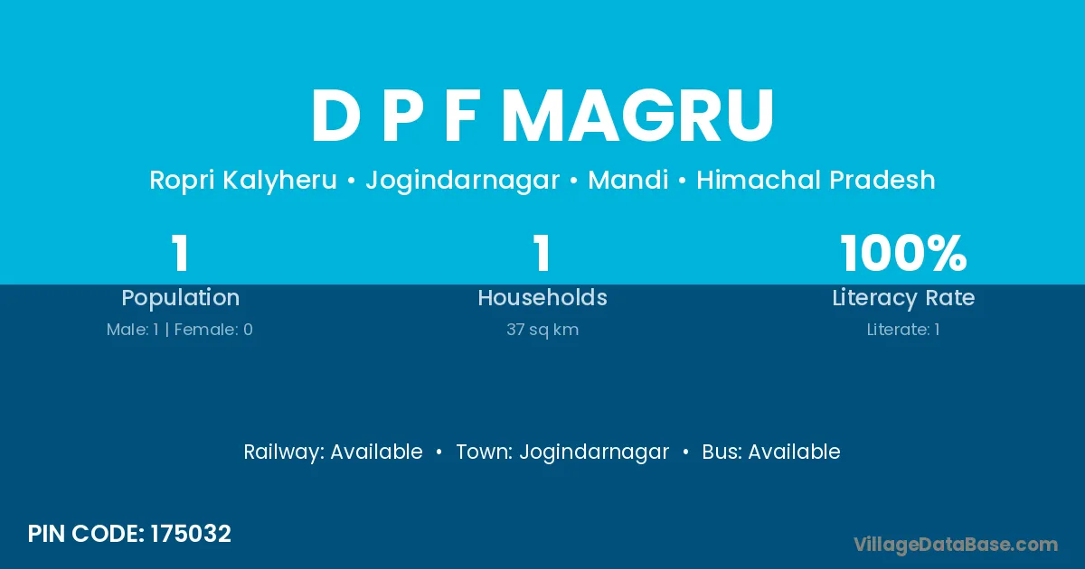 Jogindarnagar is the nearest town to D P F Magru village for major economic activities