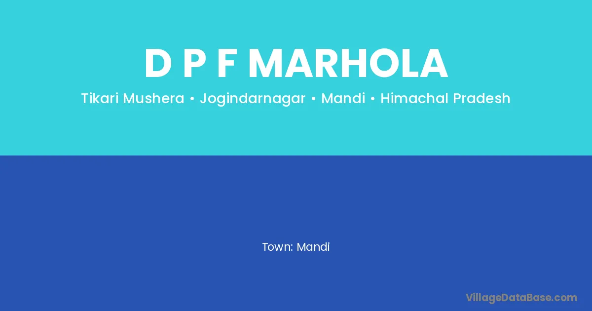 D P F Marhola village is located in the Jogindarnagar Tehsil of the Mandi district in Himachal Pradesh .