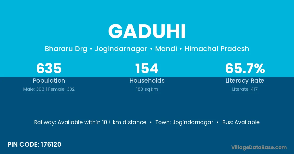 Jogindarnagar is the nearest town to Gaduhi village for major economic activities