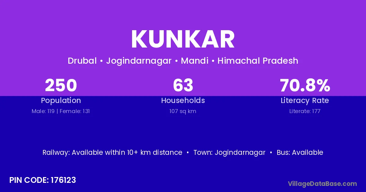 Jogindarnagar is the nearest town to Kunkar village for major economic activities