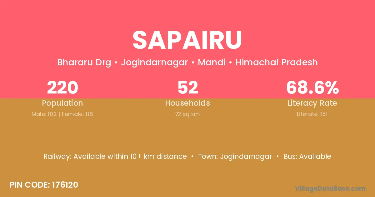 Jogindarnagar is the nearest town to Sapairu village for major economic activities