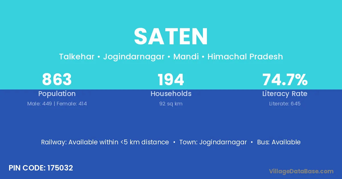 Jogindarnagar is the nearest town to Saten village for major economic activities