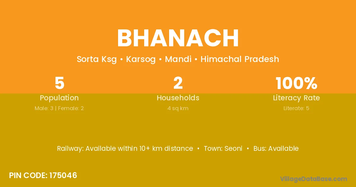 Bhanach village has a total population of 5 people, of which 3 are males and 2 are females.
