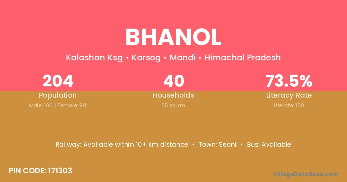 Bhanol village has a total population of 204 people, of which 106 are males and 98 are females.