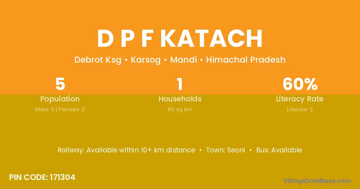 D P F Katach village has a total population of 5 people, of which 3 are males and 2 are females.
