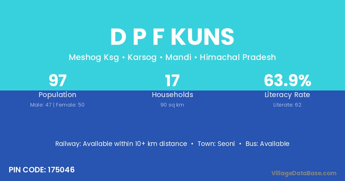 D P F Kuns village has a total population of 97 people, of which 47 are males and 50 are females.