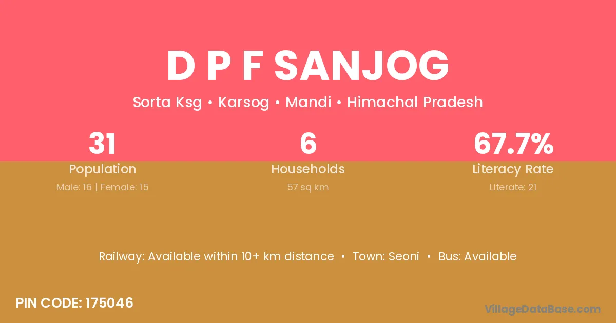 D P F Sanjog village is located in the Karsog Tehsil of the Mandi district in Himachal Pradesh .