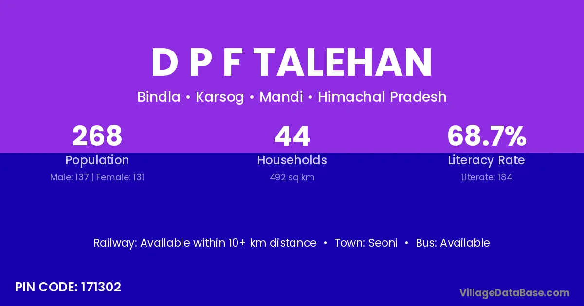 D P F Talehan village has a total population of 268 people, of which 137 are males and 131 are females.