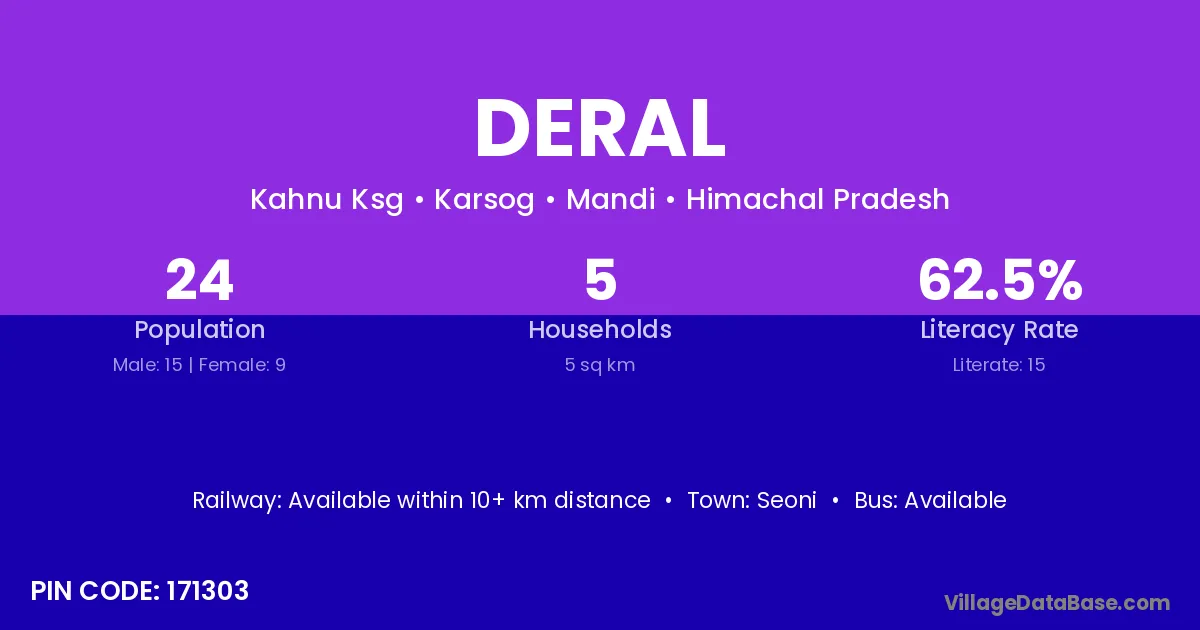 Deral village has a total population of 24 people, of which 15 are males and 9 are females.