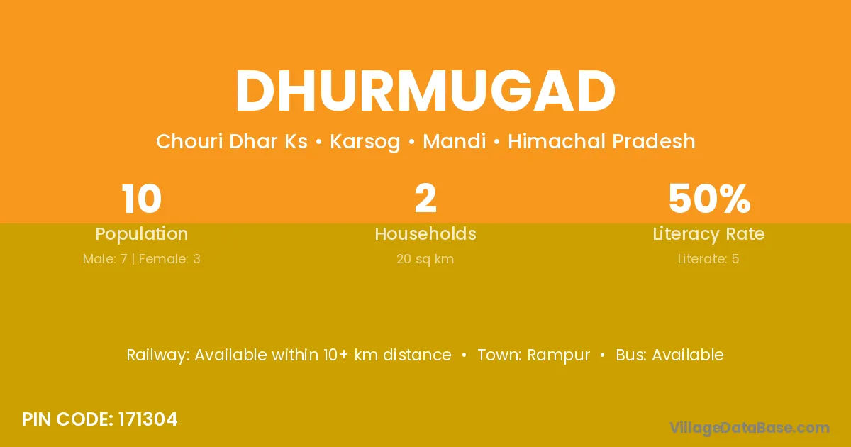 Dhurmugad village has a total population of 10 people, of which 7 are males and 3 are females.
