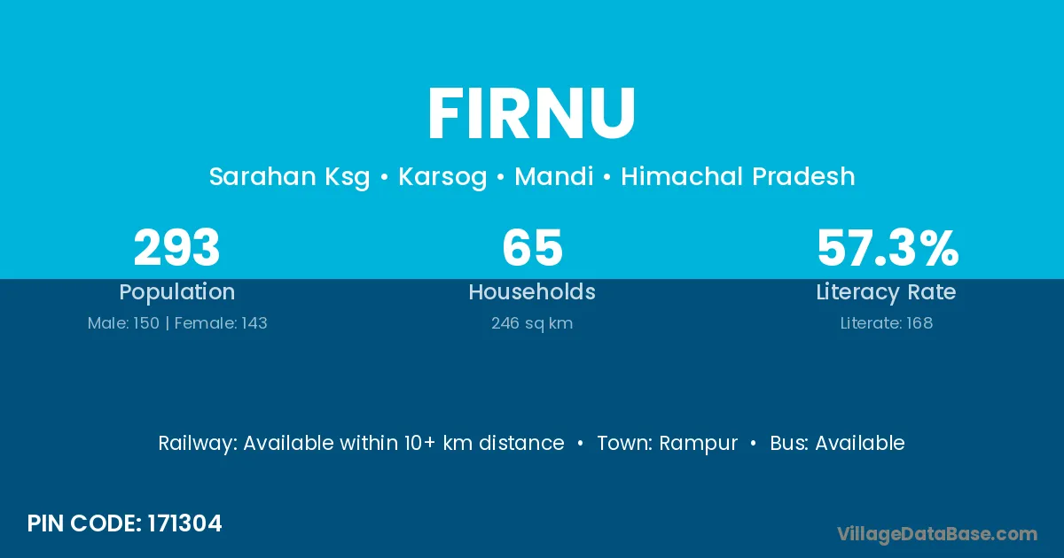 Firnu village has a total population of 293 people, of which 150 are males and 143 are females.