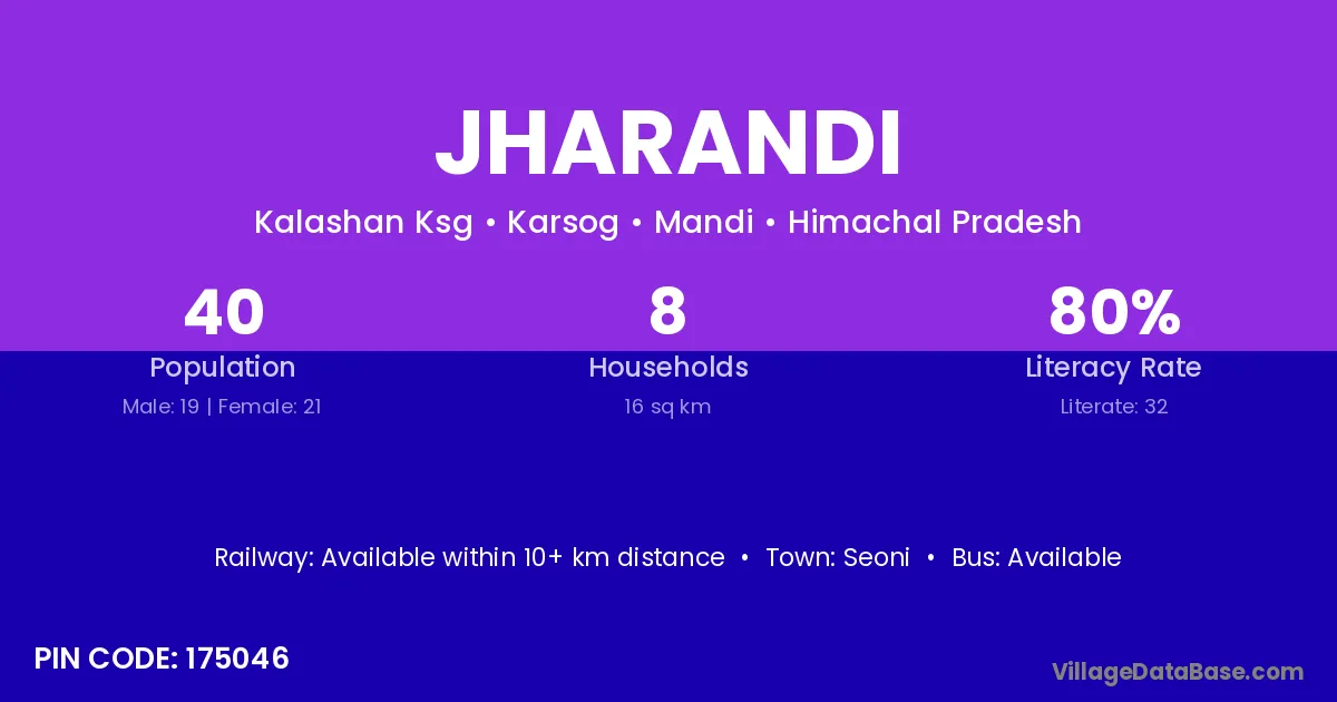 Jharandi village has a total population of 40 people, of which 19 are males and 21 are females.