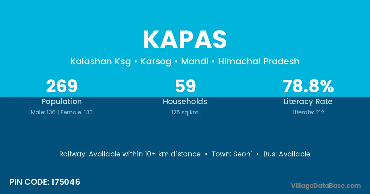 Kapas village has a total population of 269 people, of which 136 are males and 133 are females.