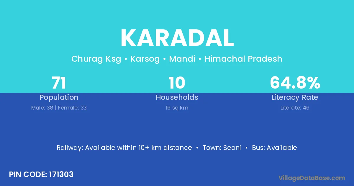 According to Census 2011 information, the village code of Karadal village is 171303.
