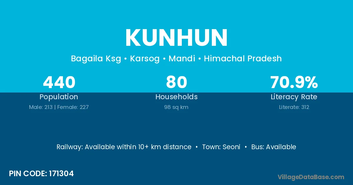 Kunhun village has a total population of 440 people, of which 213 are males and 227 are females.
