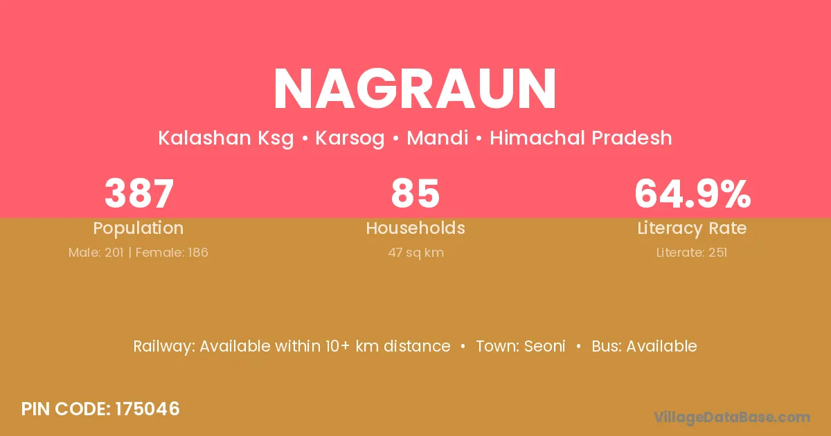 Nagraun village has a total population of 387 people, of which 201 are males and 186 are females.