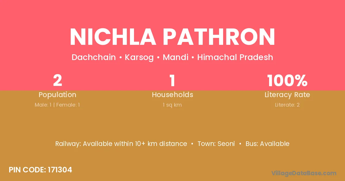 Nichla Pathron village has a total population of 2 people, of which 1 are males and 1 are females.