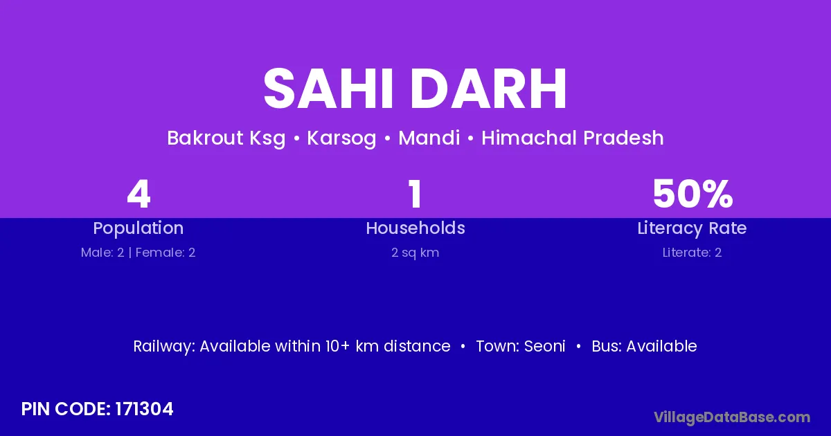 Sahi Darh village has a total population of 4 people, of which 2 are males and 2 are females.
