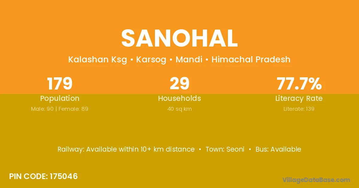 Sanohal village has a total population of 179 people, of which 90 are males and 89 are females.