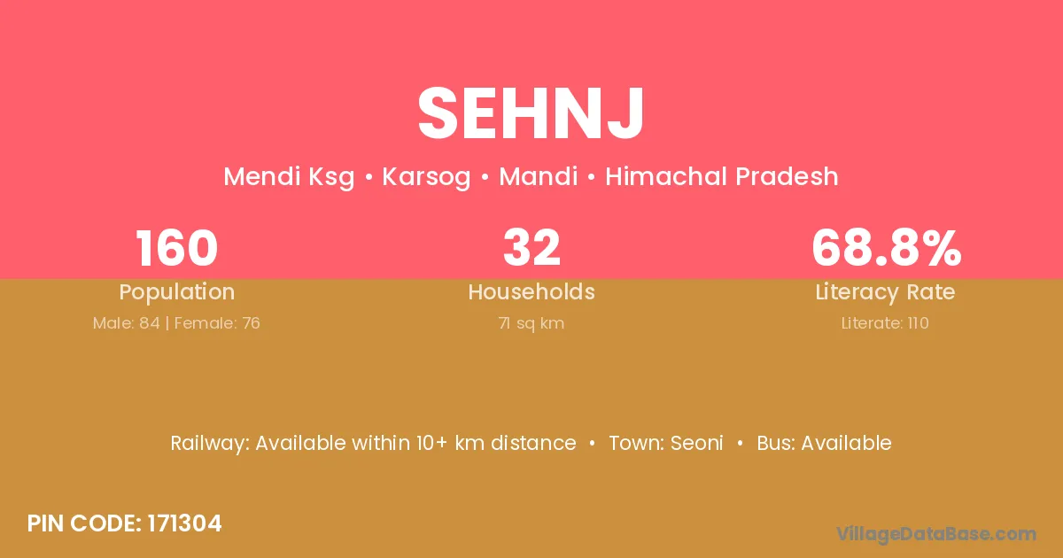 According to Census 2011 information, the village code of Sehnj village is 171304.