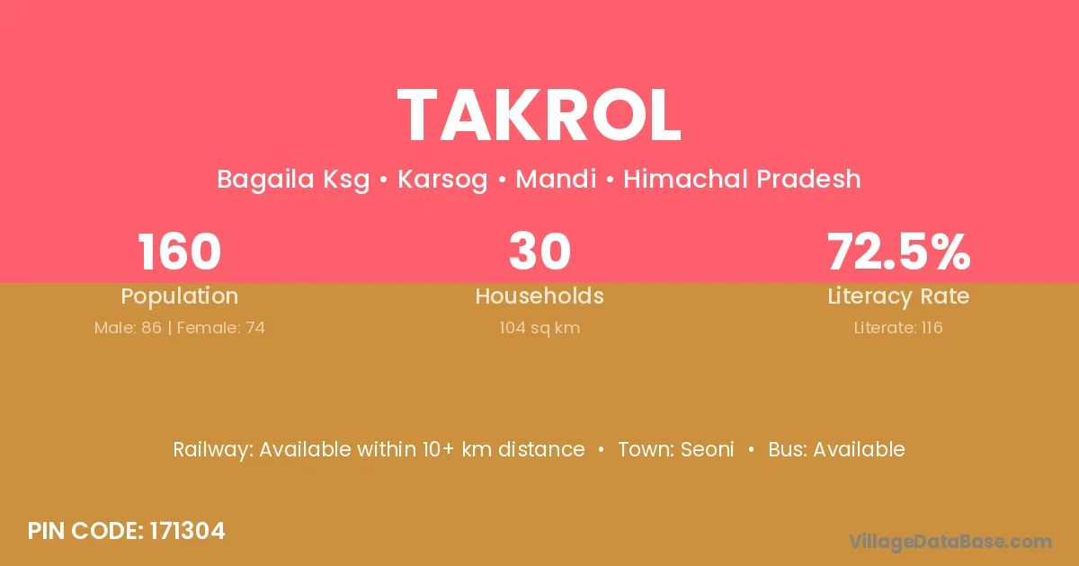According to Census 2011 information, the village code of Takrol village is 171304.