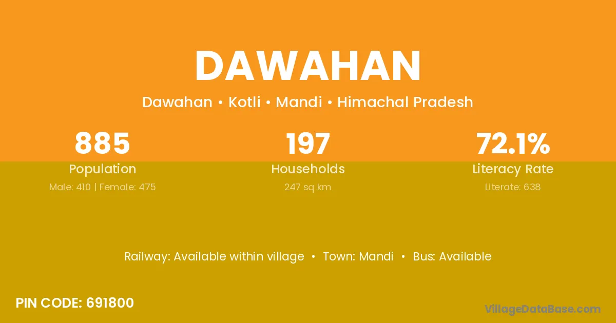 Dawahan village has a total population of 885 people, of which 410 are males and 475 are females.