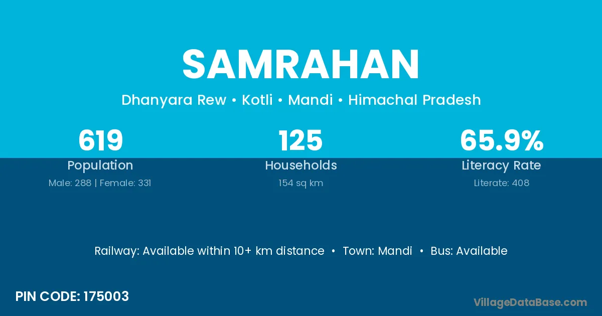 Mandi is the nearest town to Samrahan village for major economic activities