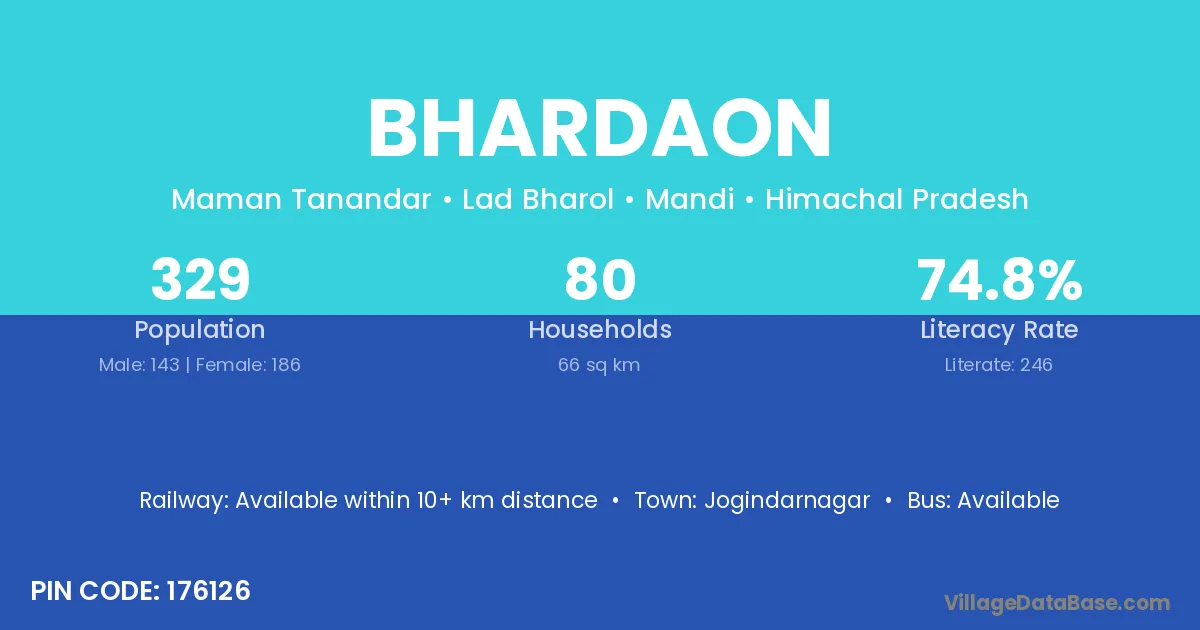 Jogindarnagar is the nearest town to Bhardaon village for major economic activities