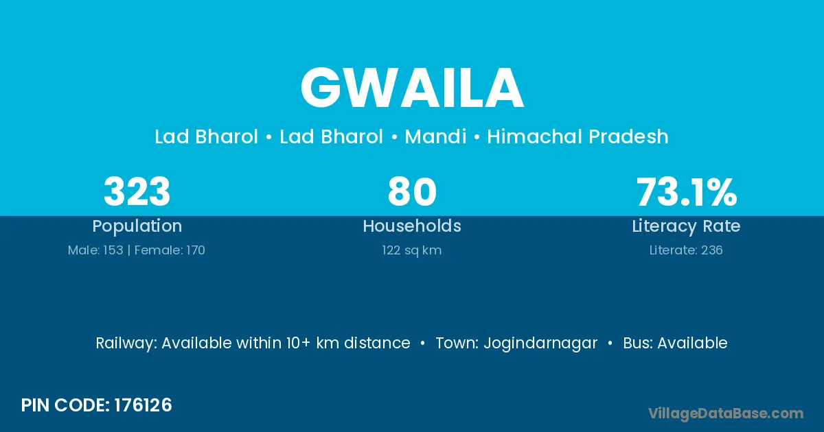 Jogindarnagar is the nearest town to Gwaila village for major economic activities