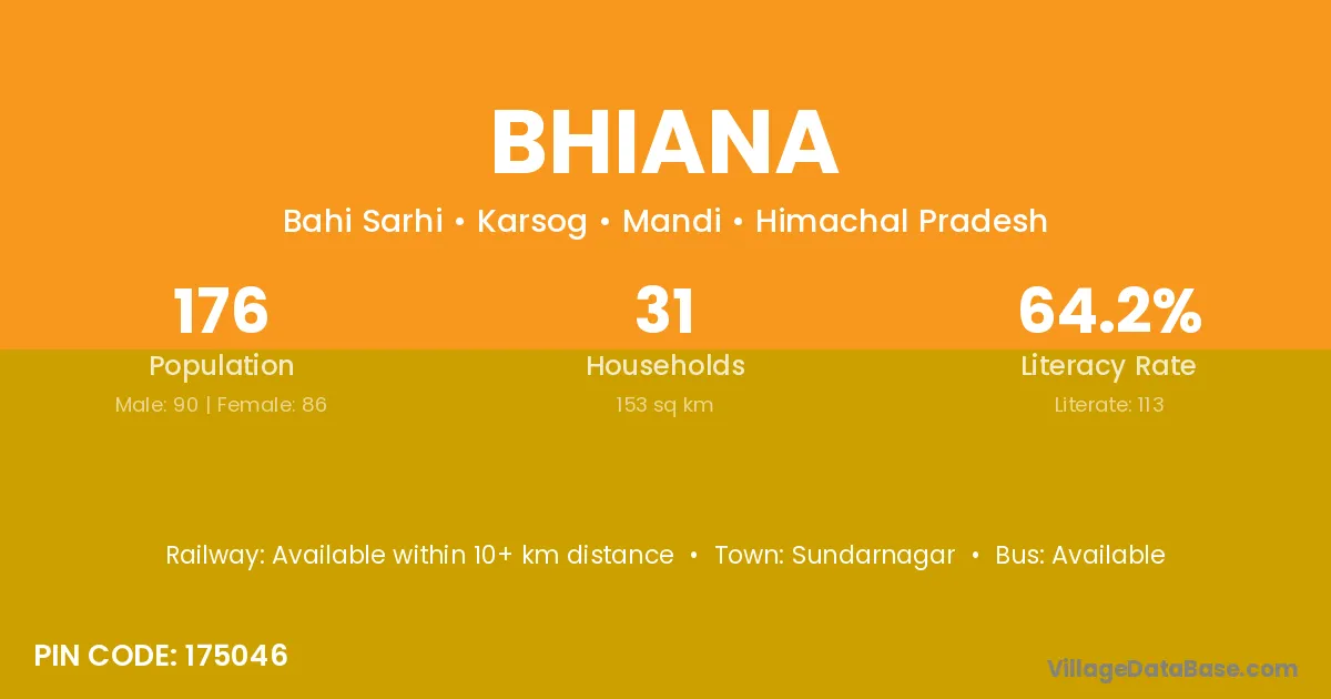 Sundarnagar is the nearest town to Bhiana village for major economic activities
