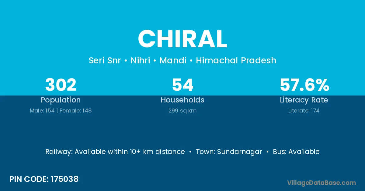 According to Census 2011 information, the village code of Chiral village is 175038.