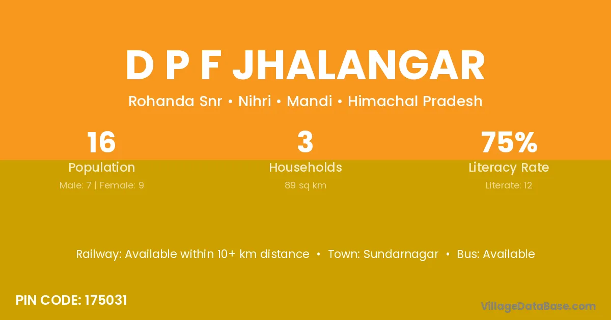 D P F Jhalangar village has a total population of 16 people, of which 7 are males and 9 are females.