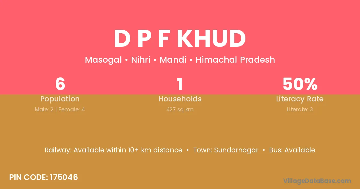 D P F Khud village has a total population of 6 people, of which 2 are males and 4 are females.