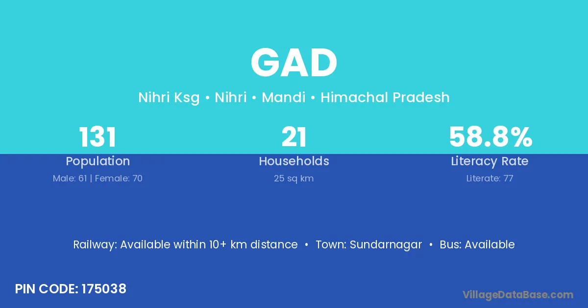 Sundarnagar is the nearest town to Gad village for major economic activities