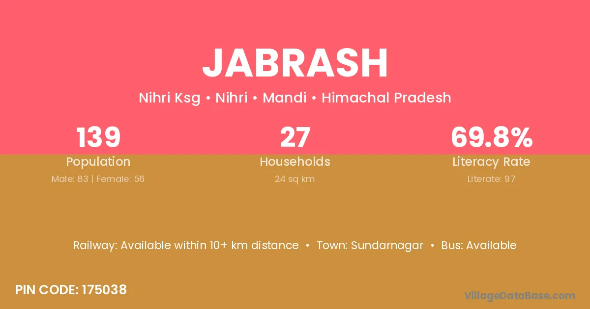 Jabrash village is located in the Nihri Tehsil of the Mandi district in Himachal Pradesh .