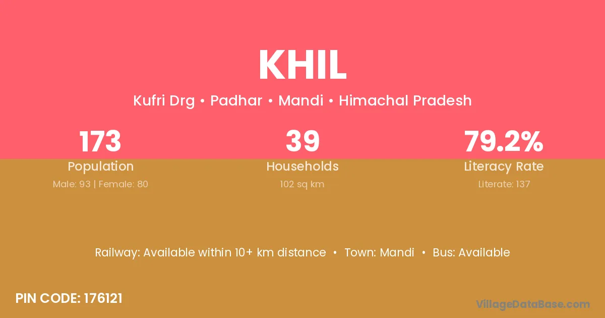 Sundarnagar is the nearest town to Khil village for major economic activities