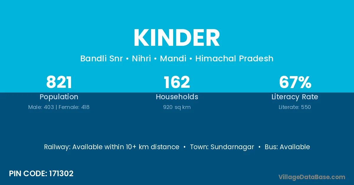 According to Census 2011 information, the village code of Kinder village is 171302.