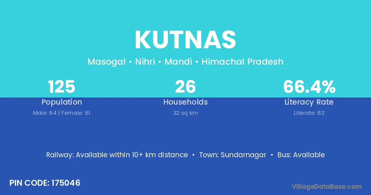 Sundarnagar is the nearest town to Kutnas village for major economic activities