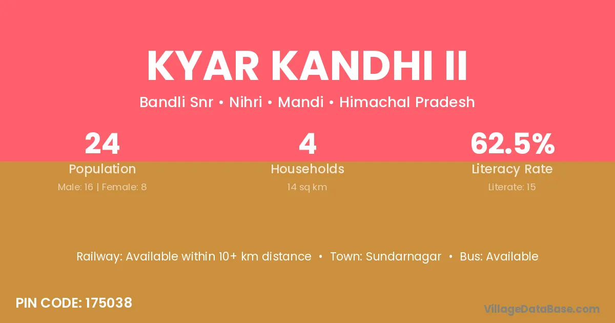 According to Census 2011 information, the village code of Kyar Kandhi Ii village is 175038.